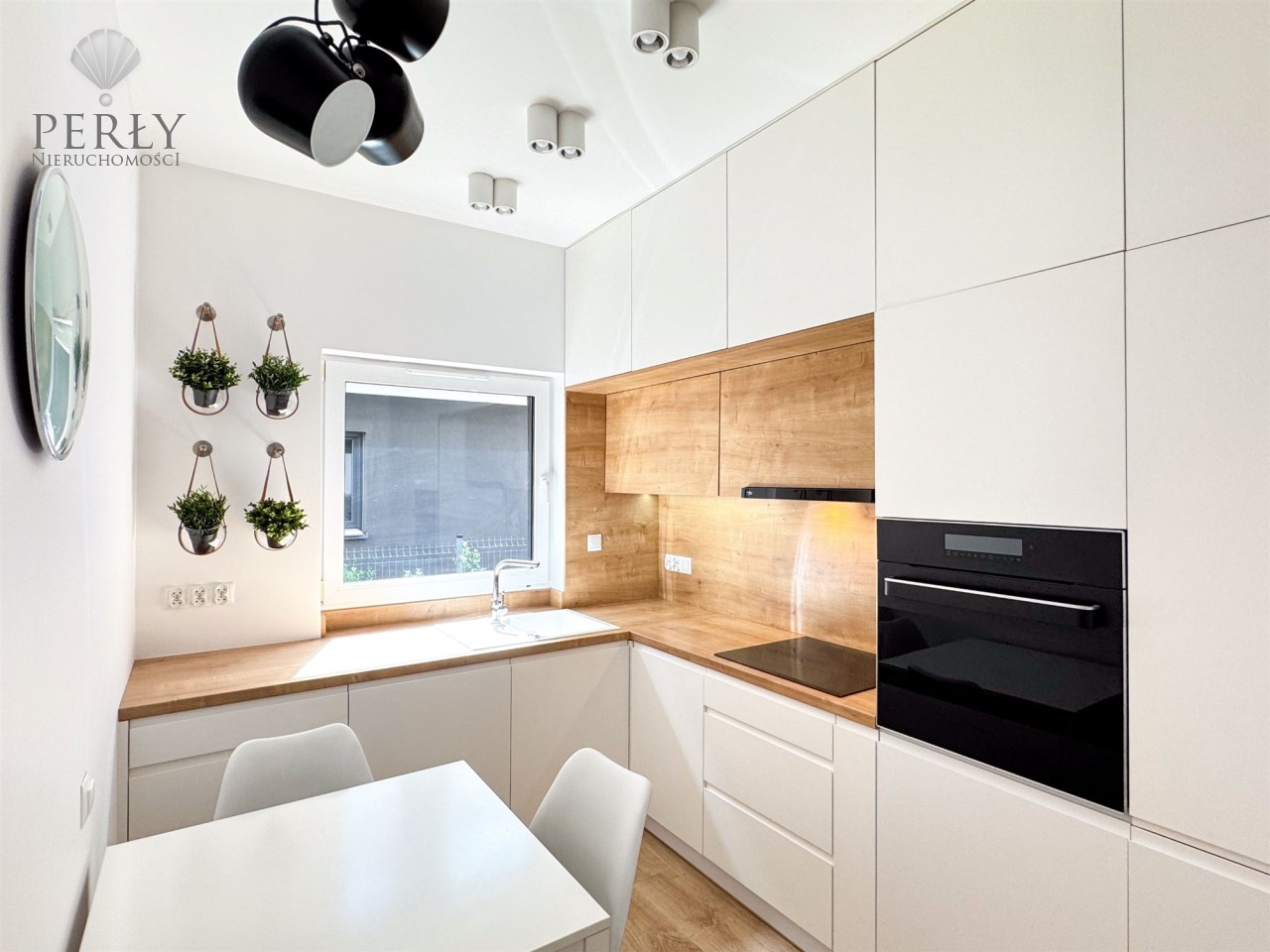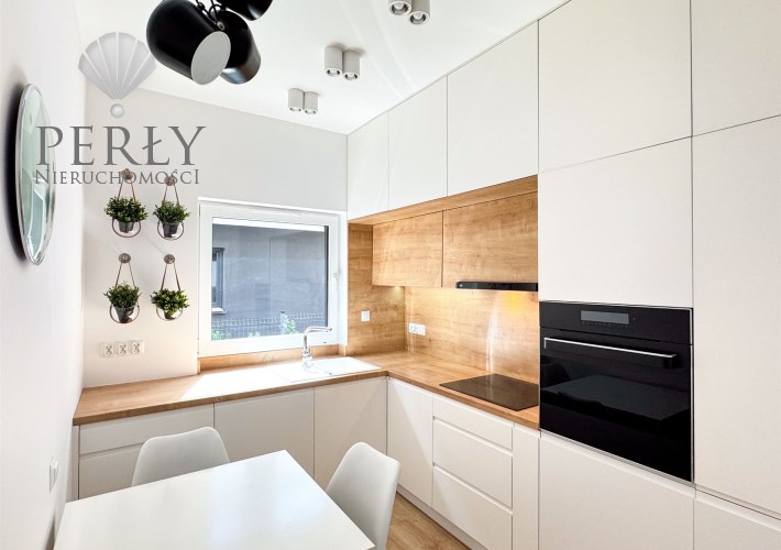 - osobna kuchnia z piękną nowoczesną zabudową - fronty lakierowane, drewno
