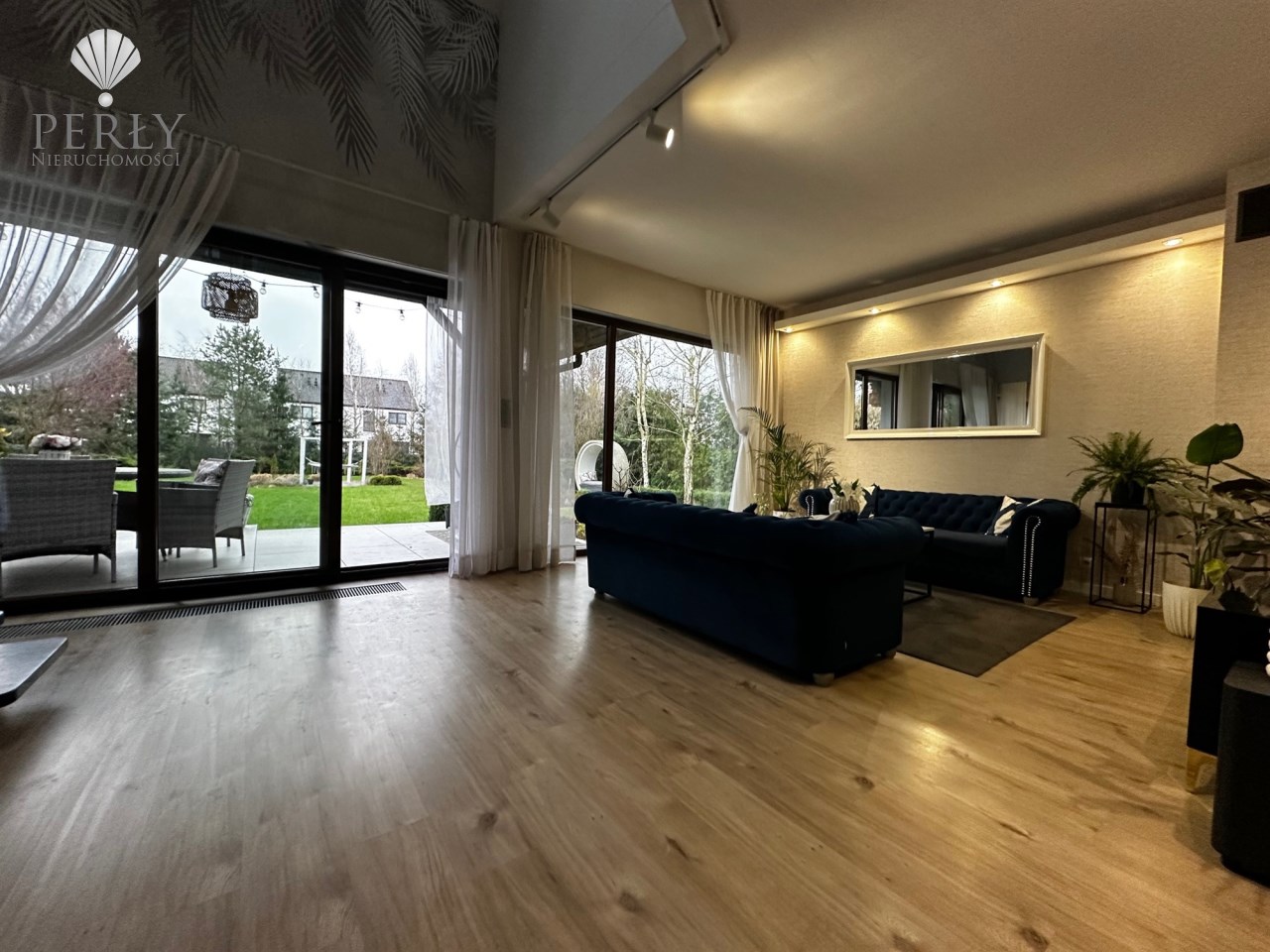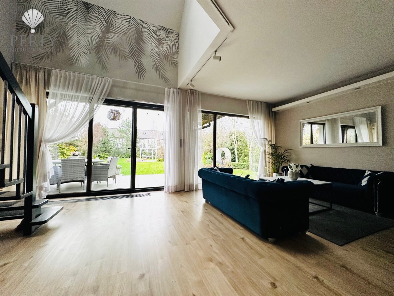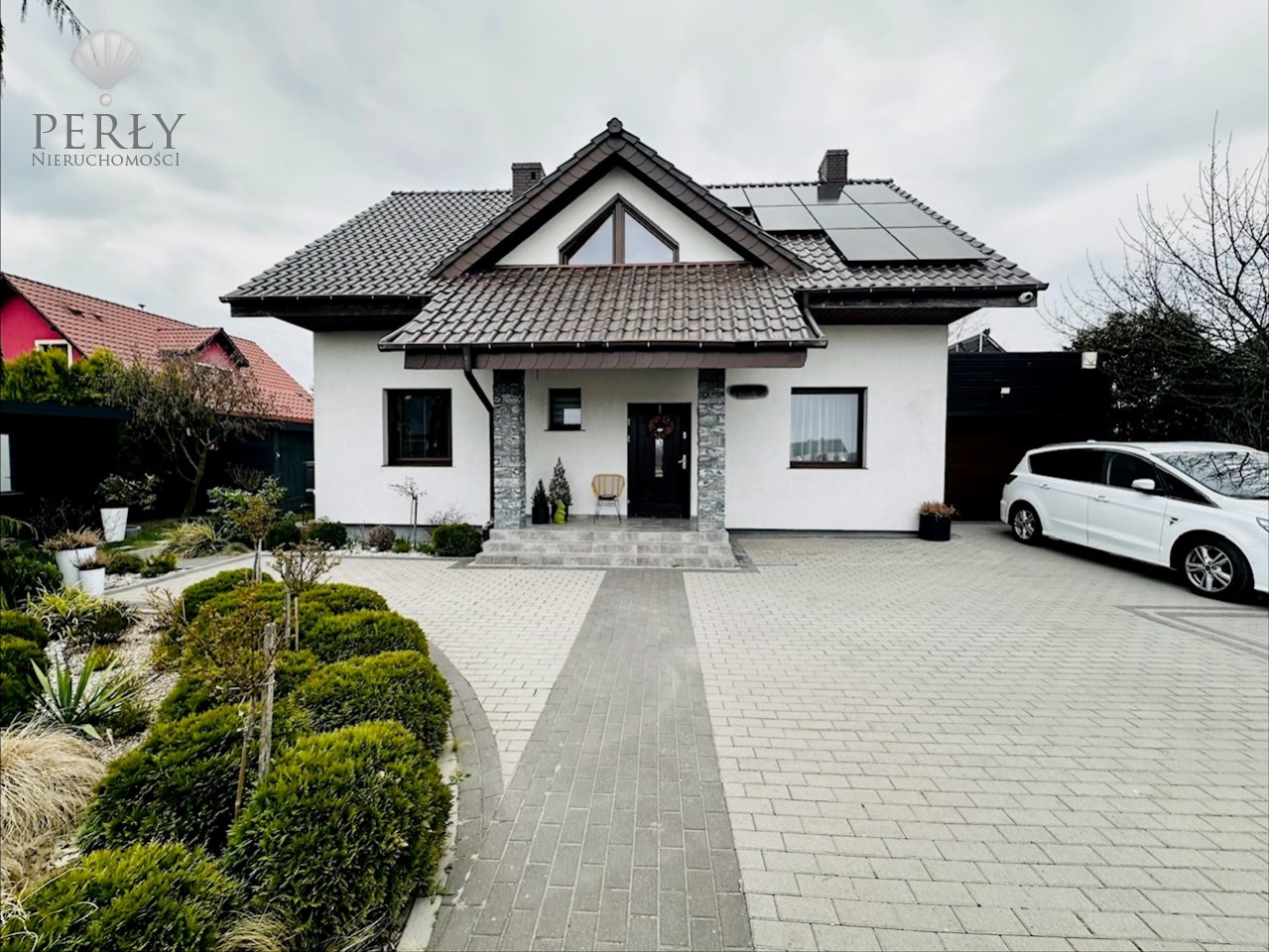 Przed domem wykostkowany podjazd, ogrodzenie metalowe od frontu, dookoła siatka, w ogrodzie dorodna roślinność. Zdjęcia jeszcze tego nie pokazują, ale niebawem będzie bujna przyroda dodająca klimatu i oferująca intymność. Na ogrodzie drewutnia, ogromny taras, miejsca wypoczynku. Liczne strawy, krzewy, dorodne drzewa. W ogrodzie system nawadniania i klimatyczne oświetlenie.